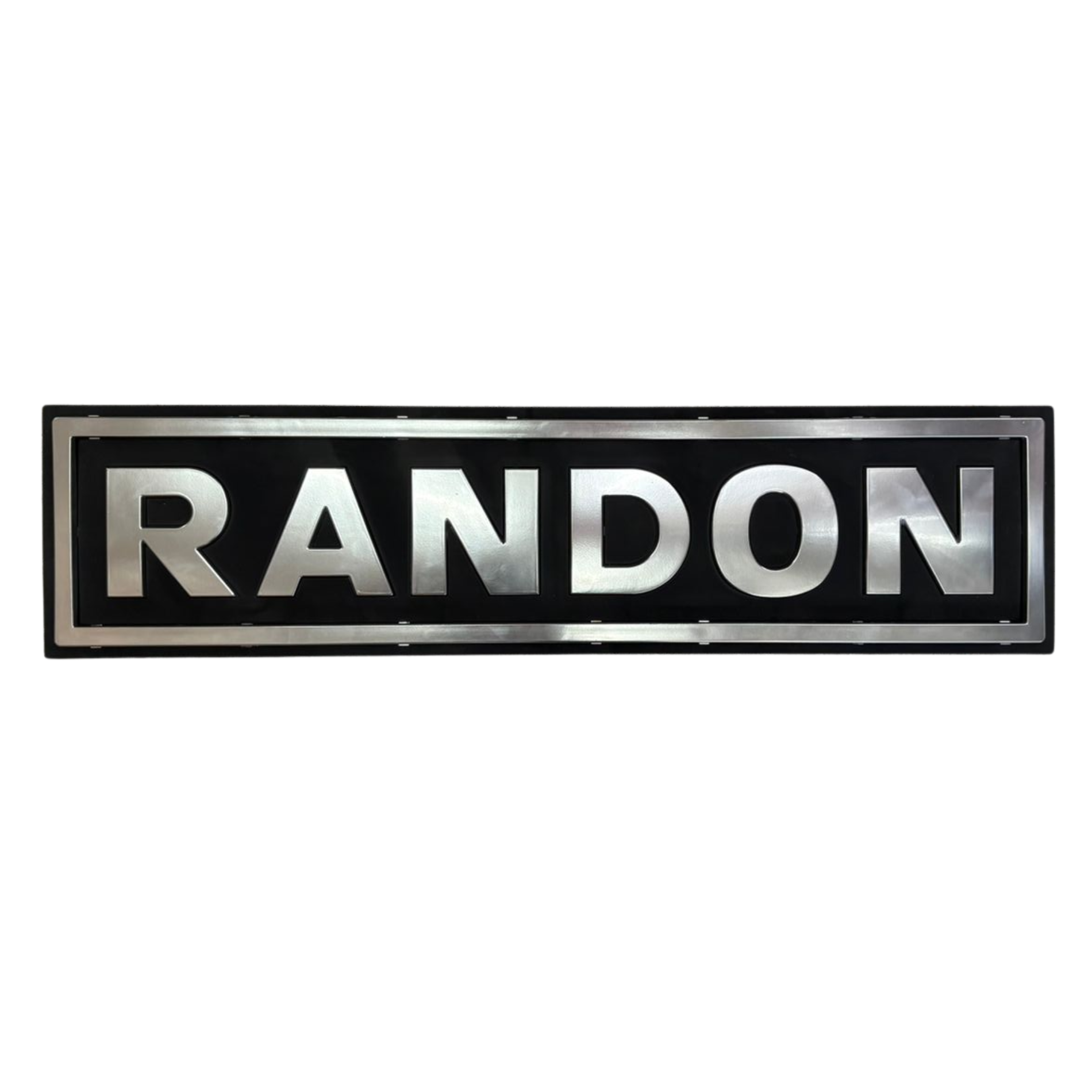 Letreiro Randon traseiro / Placa Randon saia traseira / Emblema traseiro carreta Randon / Letreiro módulo traseiro Randon / Placa identificação carreta / Logo Randon traseiro